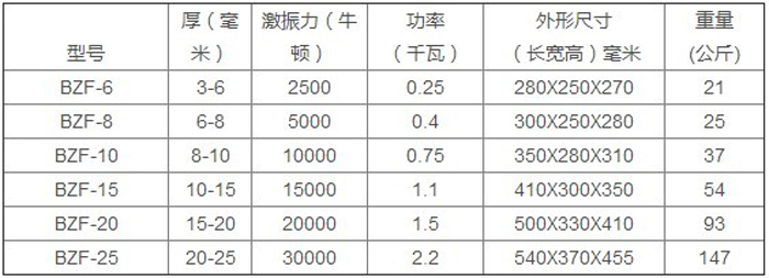 倉(cāng)壁振動(dòng)器型號(hào)參數(shù)表